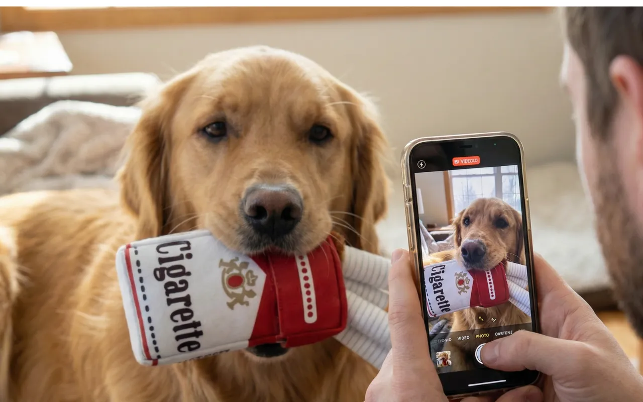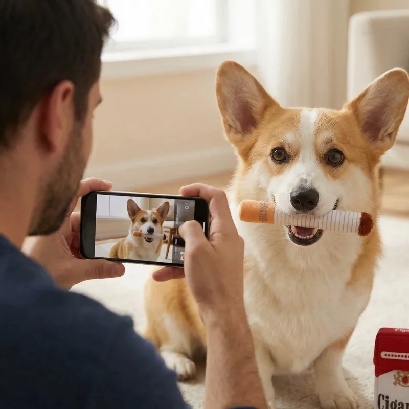 Habe das Zigaretten-Set als Gag für den Hund meines Freundes gekauft, und jetzt liegen wir beide lachend auf dem Boden, während der Hund seinen neuen Vorrat präsentiert.