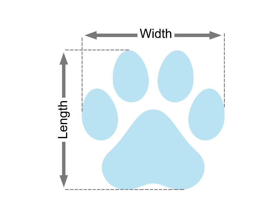 - 2. Markieren Sie die breitesten und längsten Stellen der Pfote und messen Sie diese mit einem Lineal.