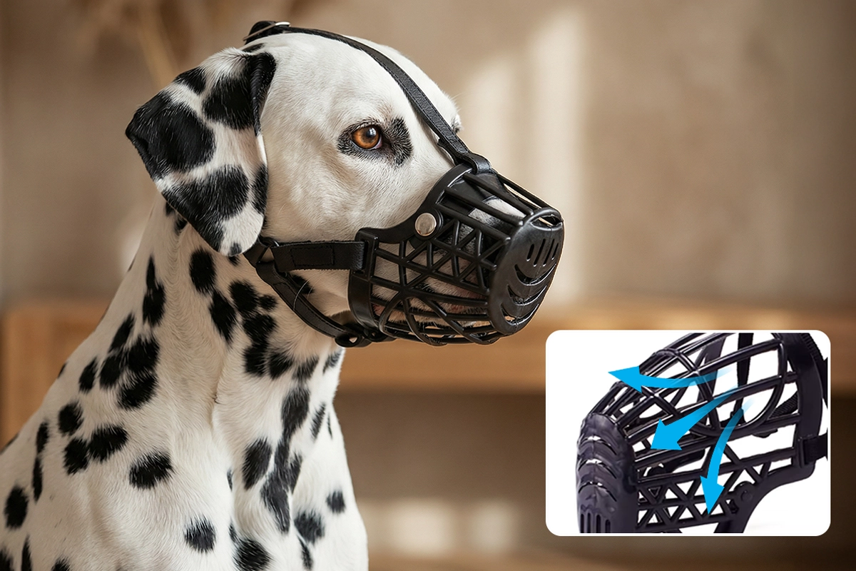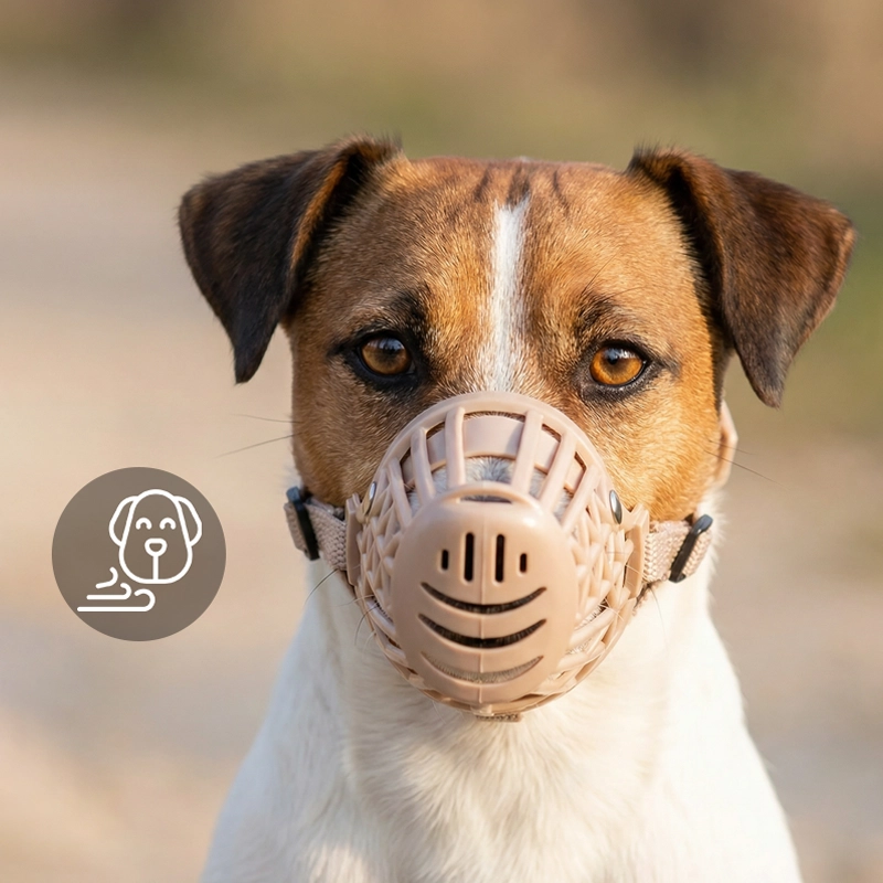 Einfach zu benutzen und sanft zum Gesicht meines Hundes. Die offene Form macht ihn weniger beängstigend und lässt Luft rein – super für den Sommer.