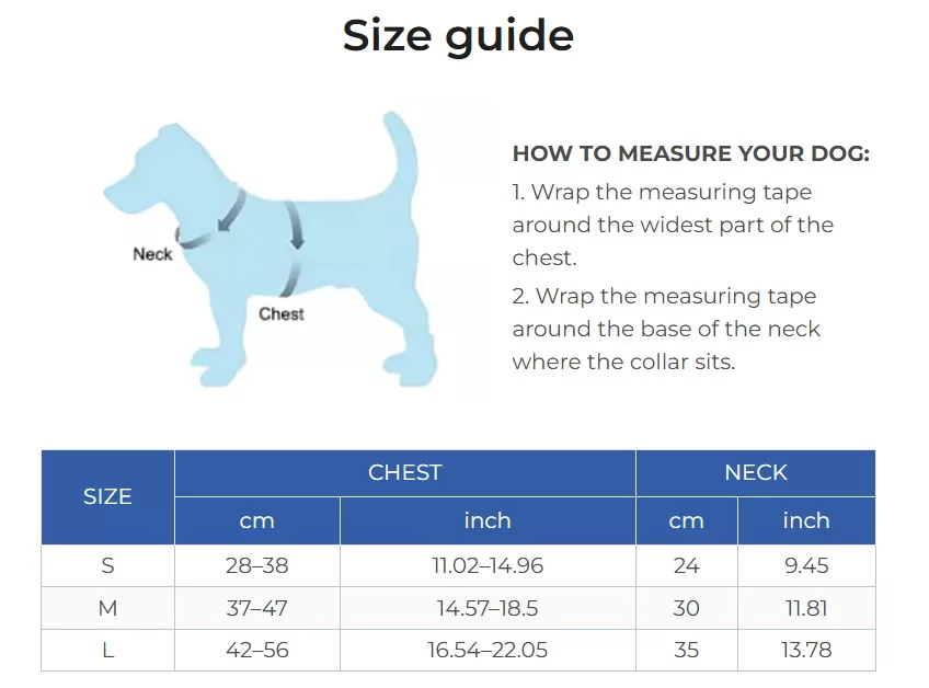 Bitte stellen Sie sicher, dass Sie Ihren Hund vor dem Kauf abmessen, um die richtige Größe zu ermitteln und die perfekte Passform zu gewährleisten.