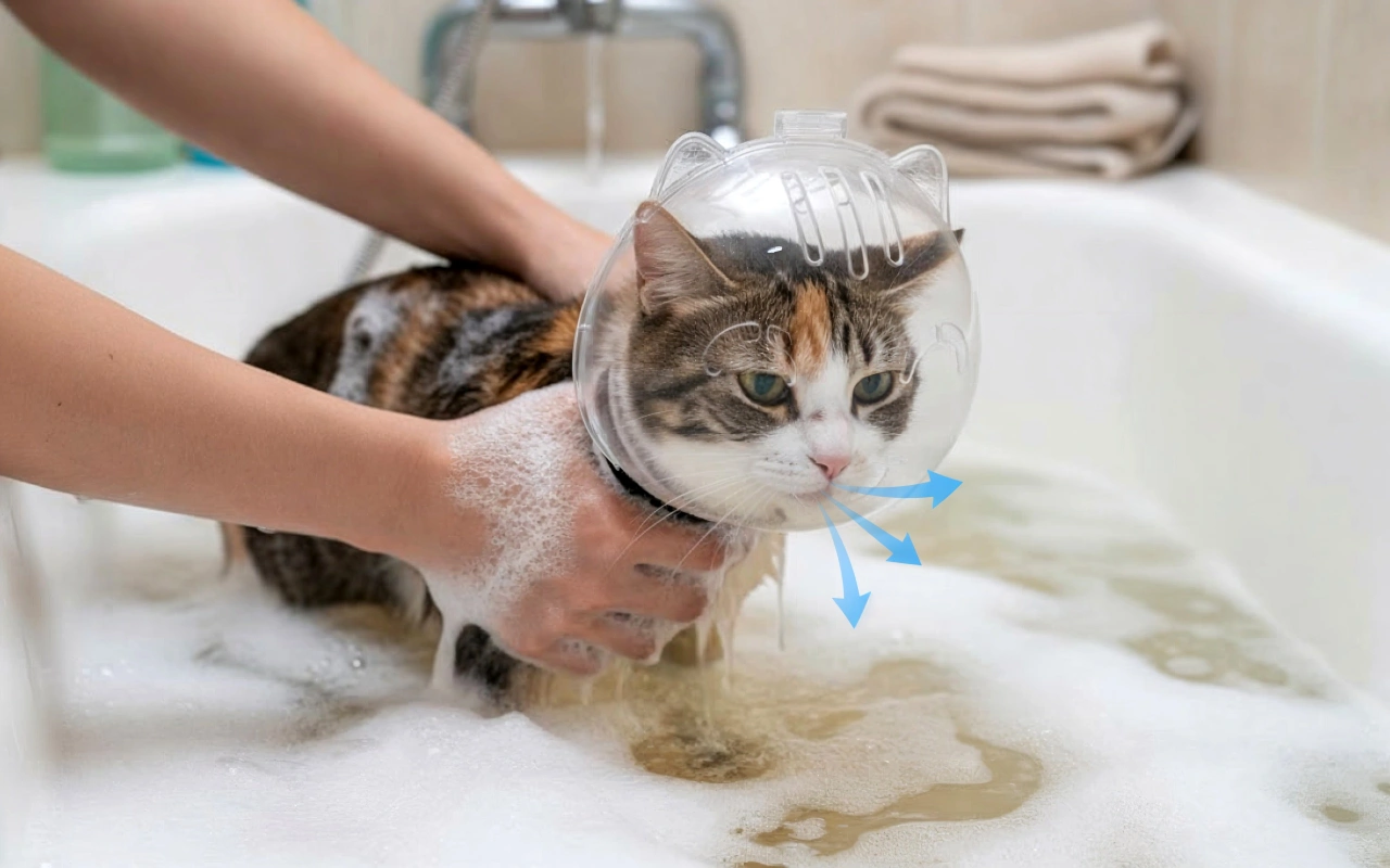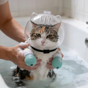 Meine Katze hasst Wasser, aber mit dieser Haube gibt es kein wütendes Beißen oder Kratzen mehr. Ich kann sie endlich sicher waschen und sie wirkt nicht verärgert.