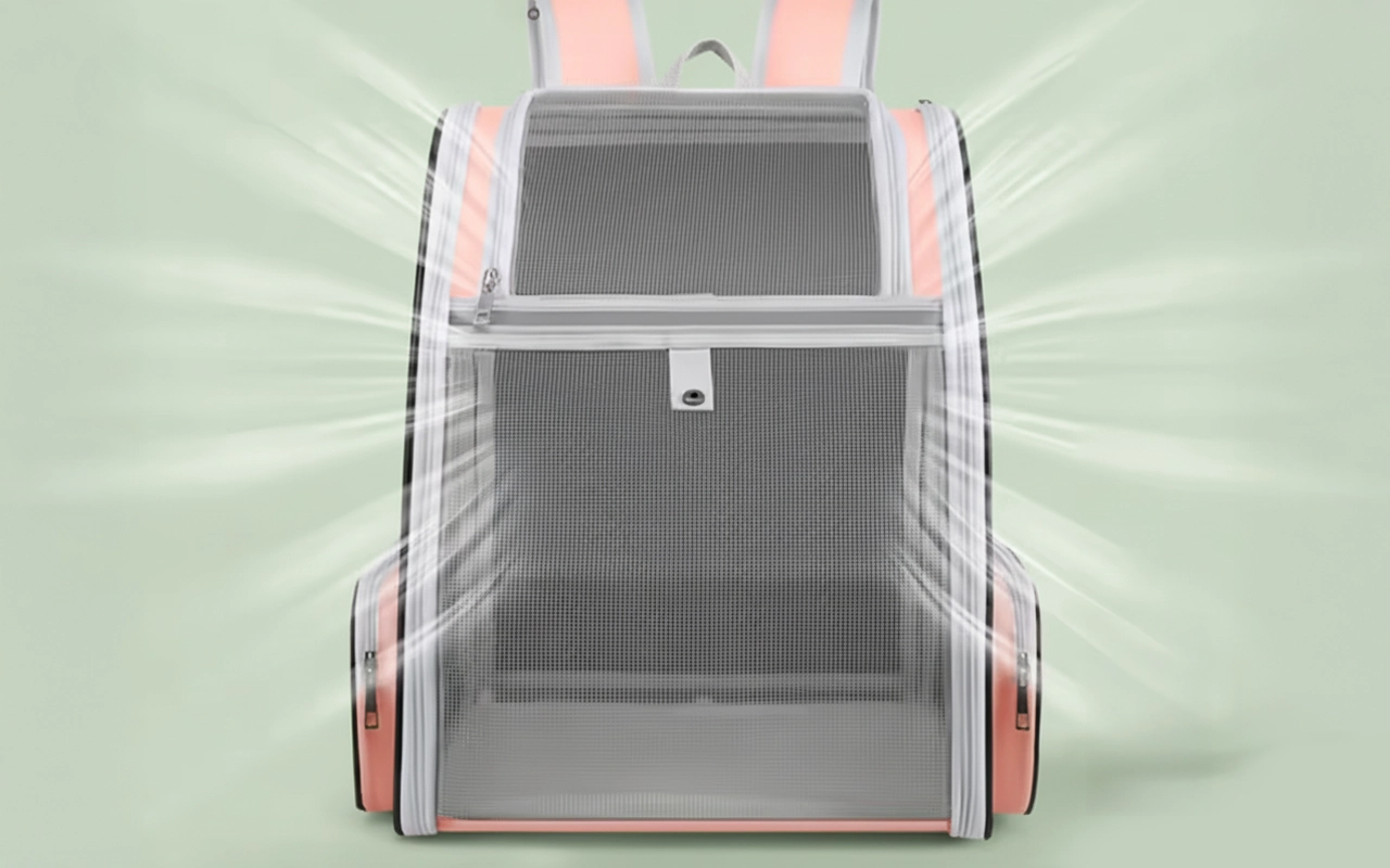 Frische Luft strömt durch Netzflächen an allen Seiten. Haustiere bleiben entspannt und kühl bei Spaziergängen oder Ausflügen nach draußen.