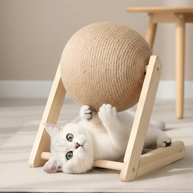 Zwei Katzen, null zerstörte Möbel seit dem Kauf der Kratzkugel. Beide klettern und spielen jeden Morgen darauf. Robust und wirklich gut für ihre Krallen.