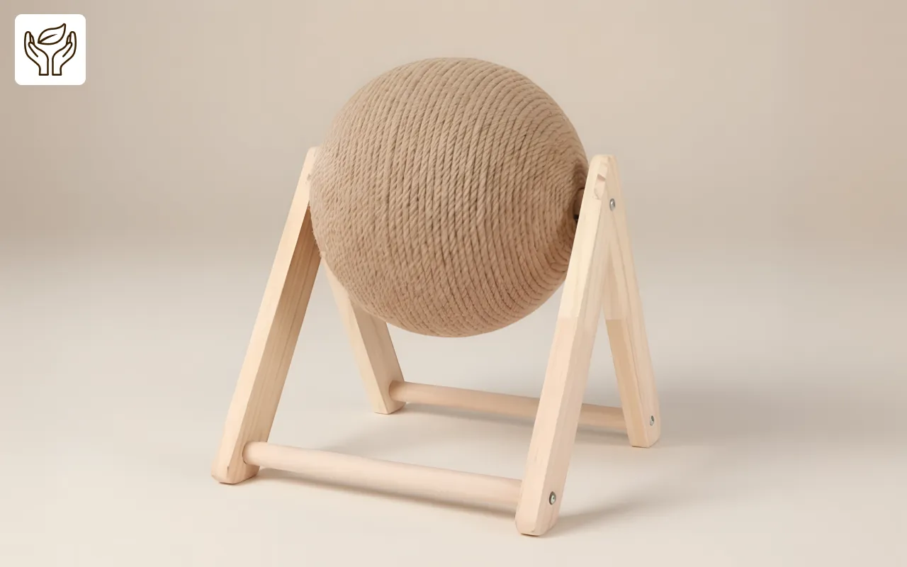 Ich freue mich, dass meine Katze recyceltes Spielzeug benutzt. Mit dieser Kratzkugel wird ihr nie langweilig und ich mag das natürliche Gefühl, das sie ins Haus bringt.