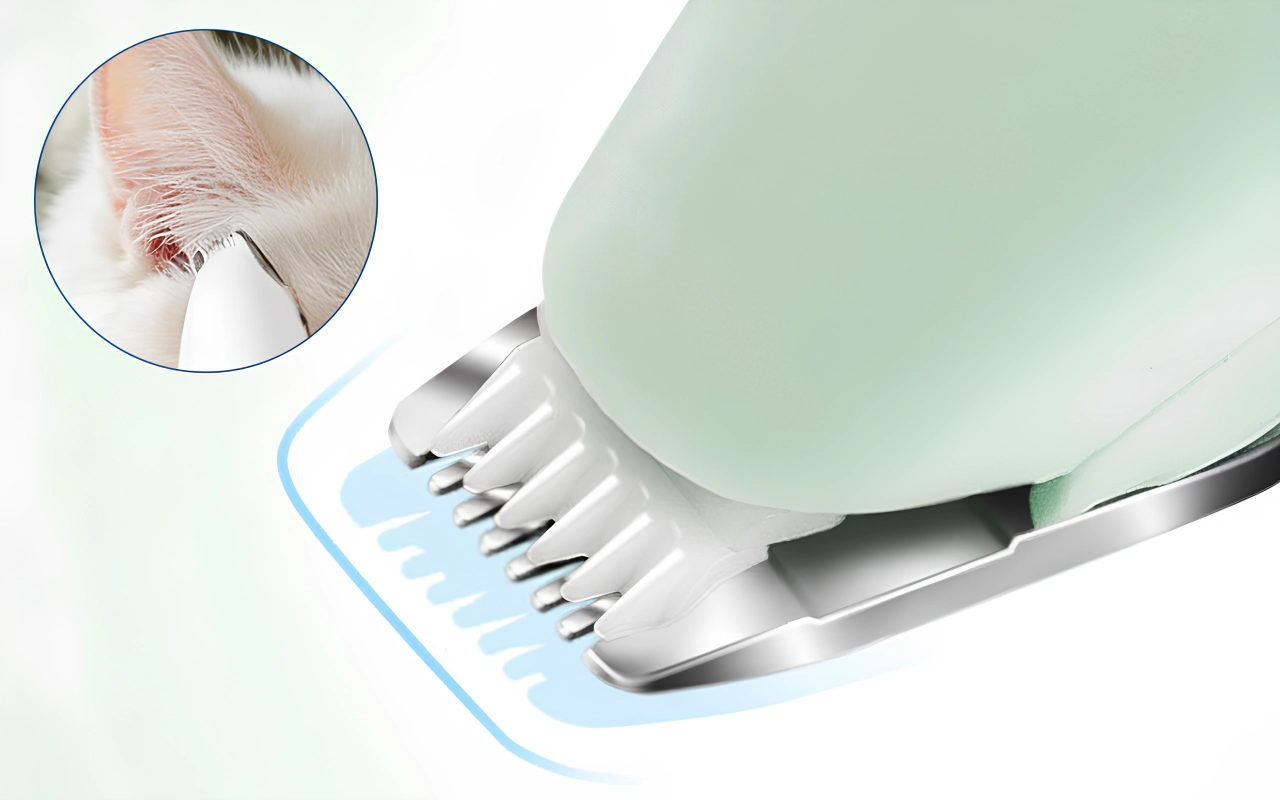Die kleine Klinge erreicht enge Stellen, ohne die Haut zu ziehen. Jede Bewegung sorgt für ordentliches Ergebnis an Pfoten, Gesicht und Schwanz.