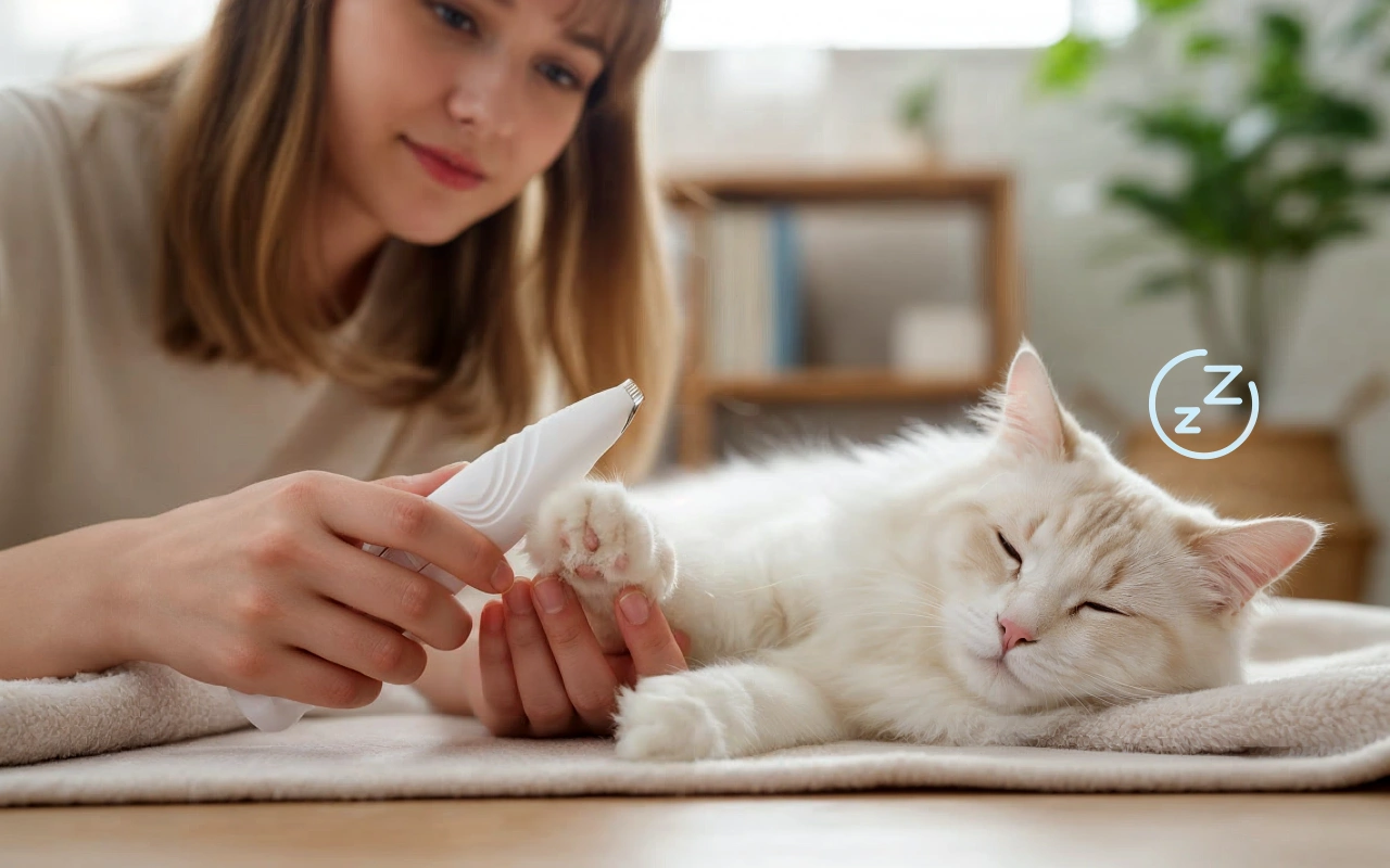 Sanfte Geräusche helfen Tieren, sich während der Fellpflege zu entspannen. Geringere Lautstärke hält Haustiere ruhig und schafft jedes Mal Vertrauen.