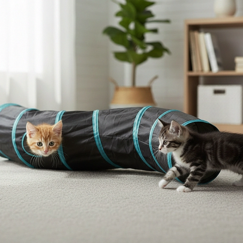 Der Tunnel ist zum Hauptattraktion im Wohnzimmer geworden! Ich sehe oft, wie meine Katze im Zickzack durchschießt und dann herausschaut, um zu fangen zu spielen.