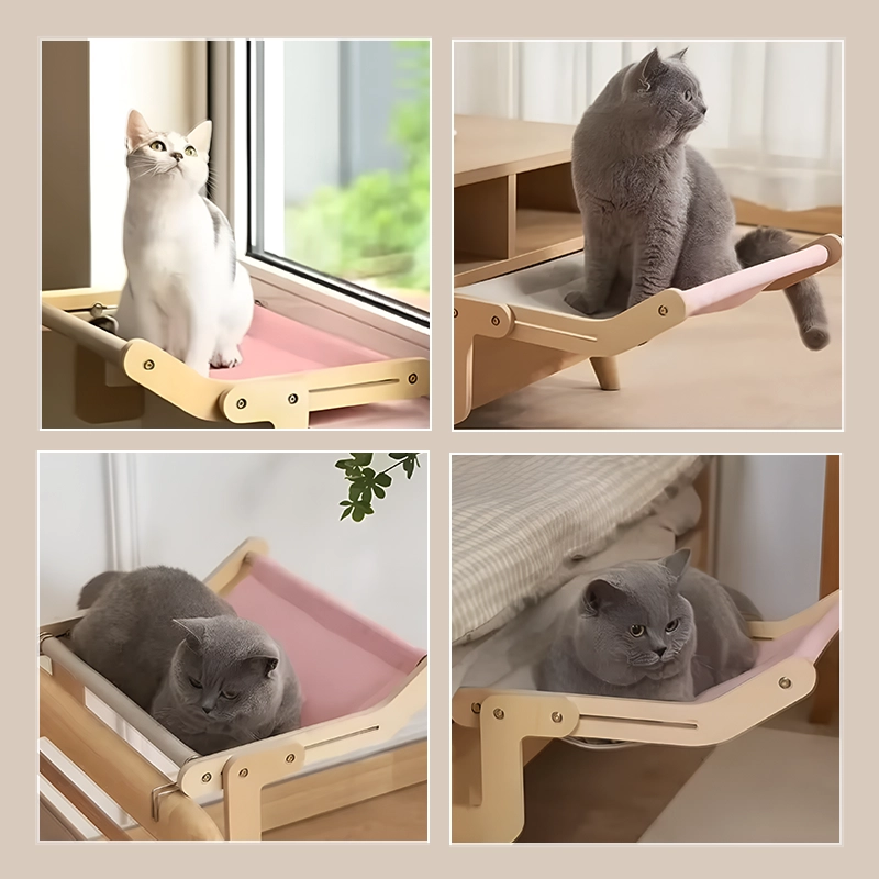 Der stabile Holzrahmen hält meine zwei Katzen sicher, selbst wenn sie gemeinsam darauf springen. Leicht zum Reinigen abzunehmen.