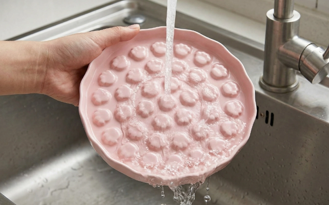 Die Reinigung benötigt nur ein schnelles Abspülen mit warmem Wasser. In diesem Design bleiben keine versteckten Reste oder Flecken zurück.