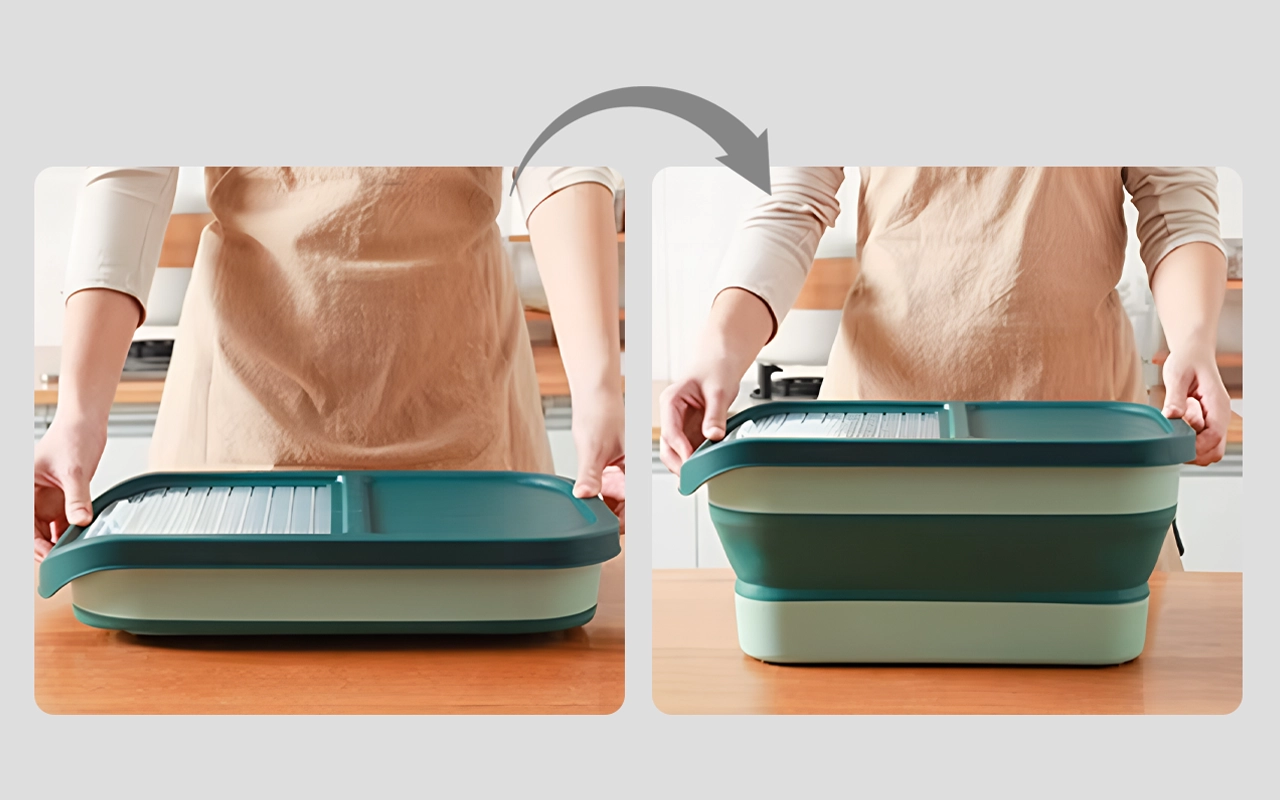 Faltet sich in Sekunden flach zusammen und schafft wertvollen Platz in der Küche. Überall verstaubar und endlich keine unordentlichen Stapel mehr.