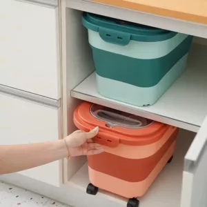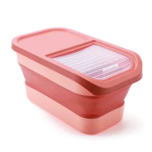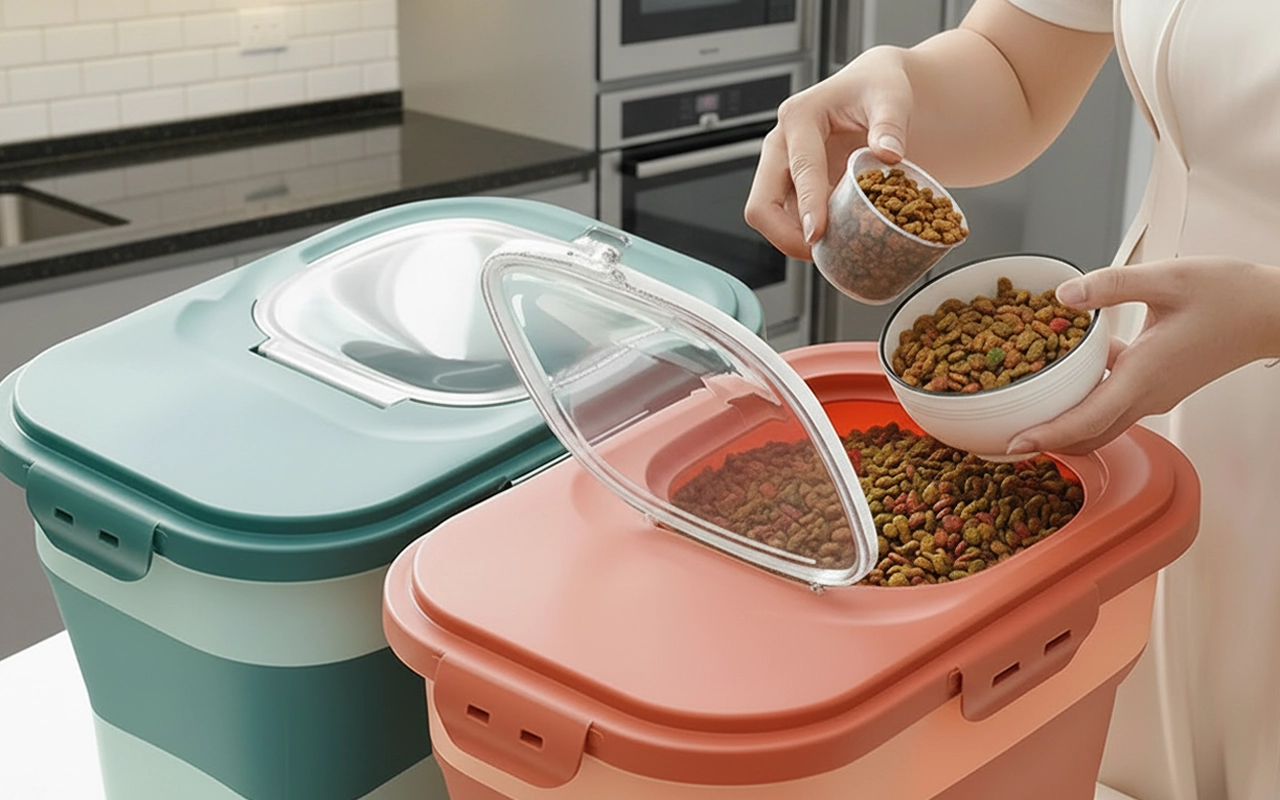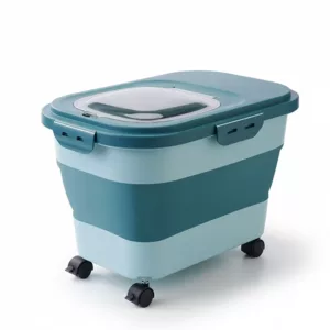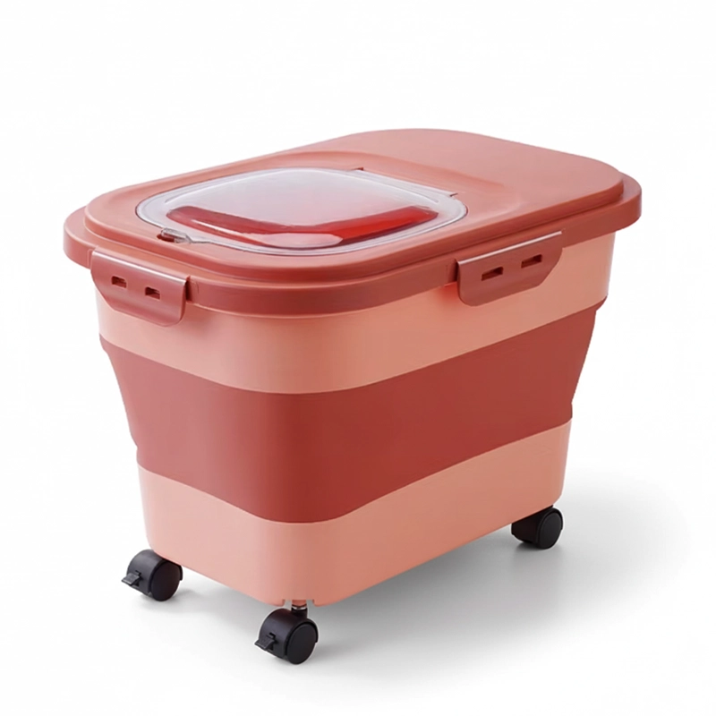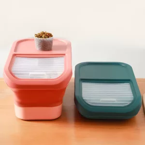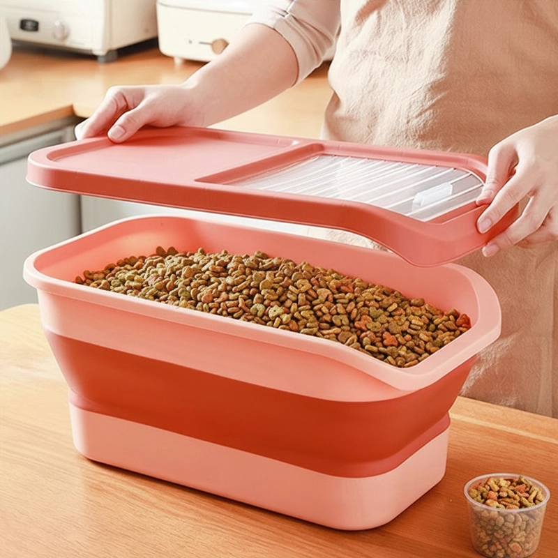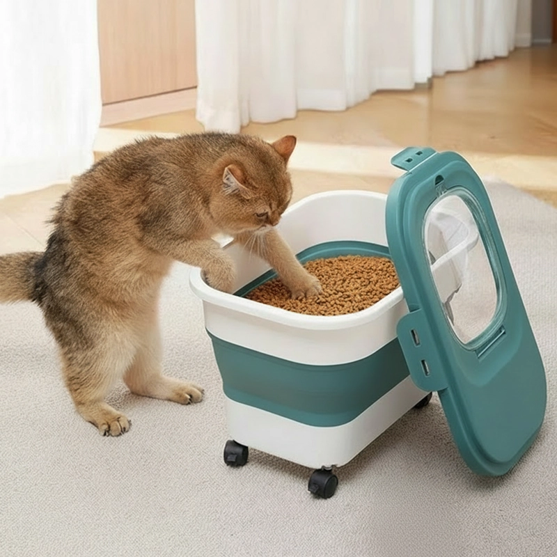 Ich benutze den Behälter sowohl für Hunde- als auch für Katzenfutter. Ihn einfach auf den Rollen durch die Küche zu ziehen, ist besonders praktisch, wenn ich es eilig habe.