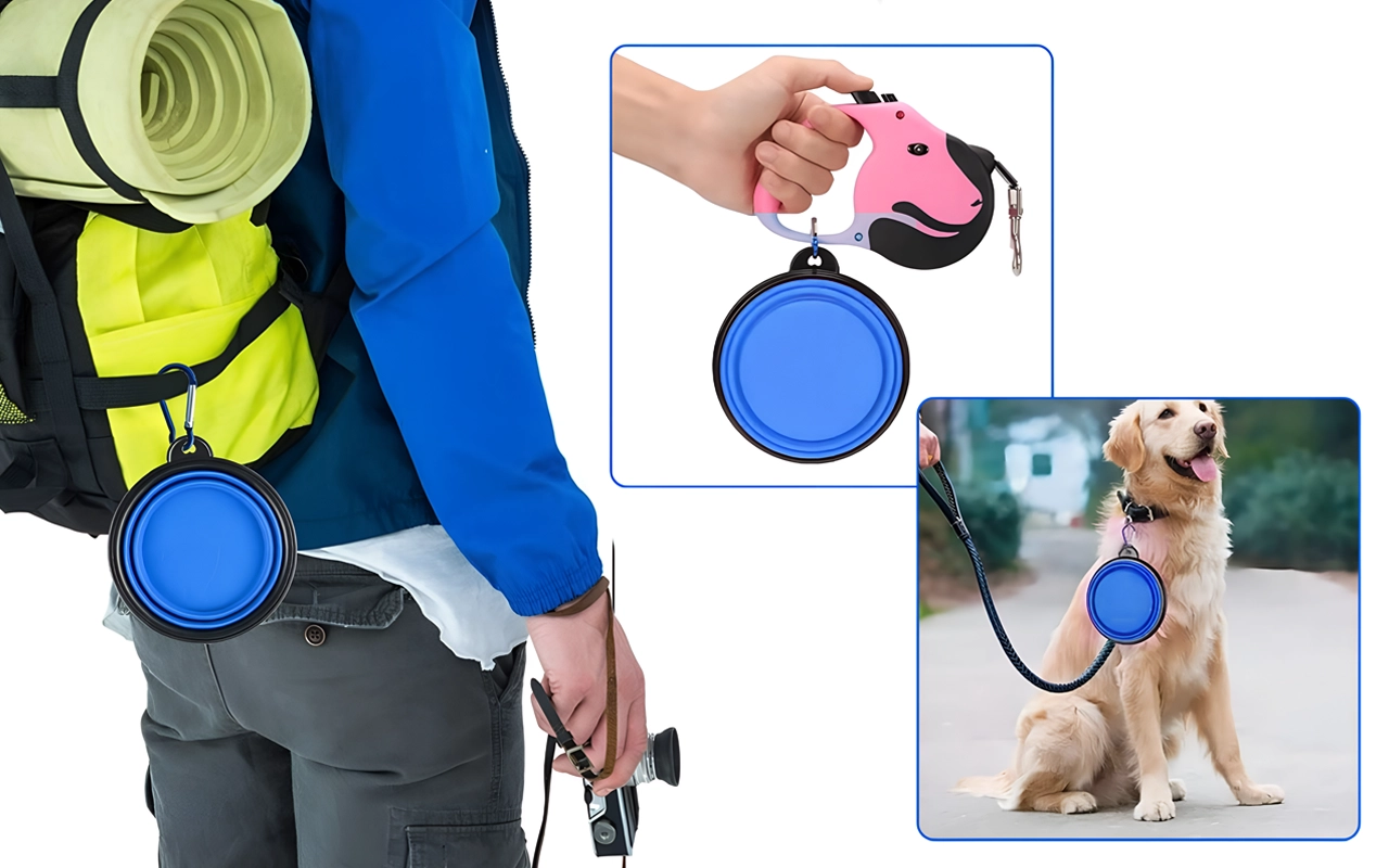 Faltbarer Reisenapf für Hunde mit Karabiner