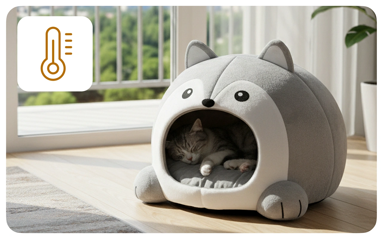 Jedes Tier bleibt behaglich, selbst wenn die Nächte kühl werden. Der dicke Stoff umgibt die Schläfer und bewahrt die Körperwärme sanft im Inneren.