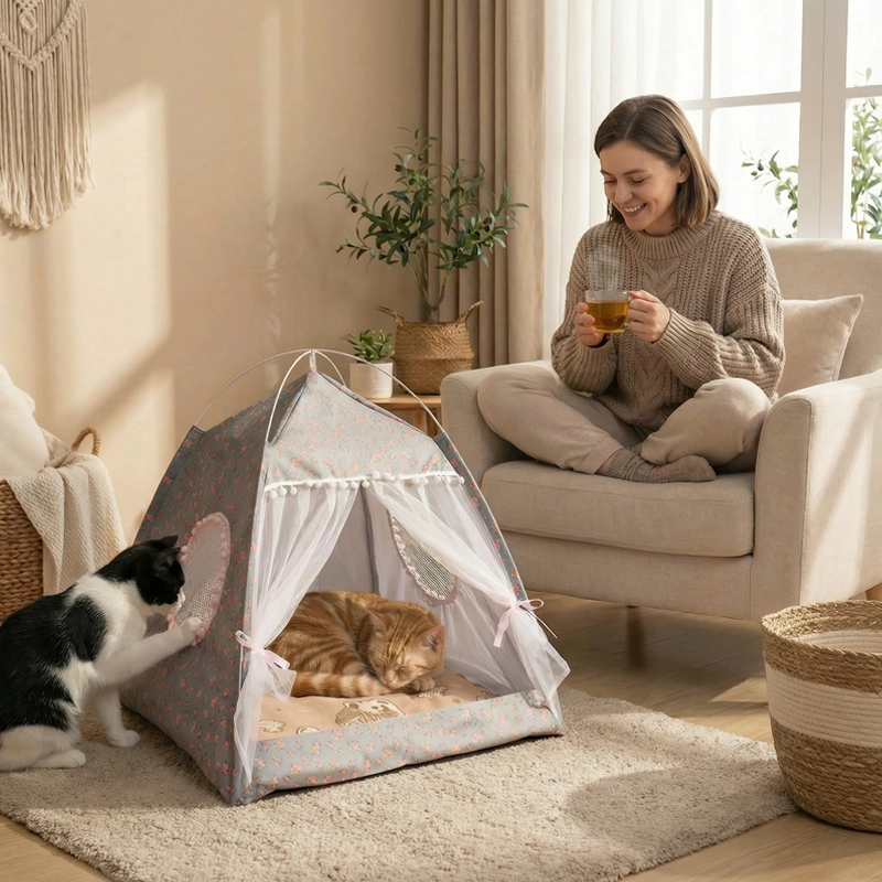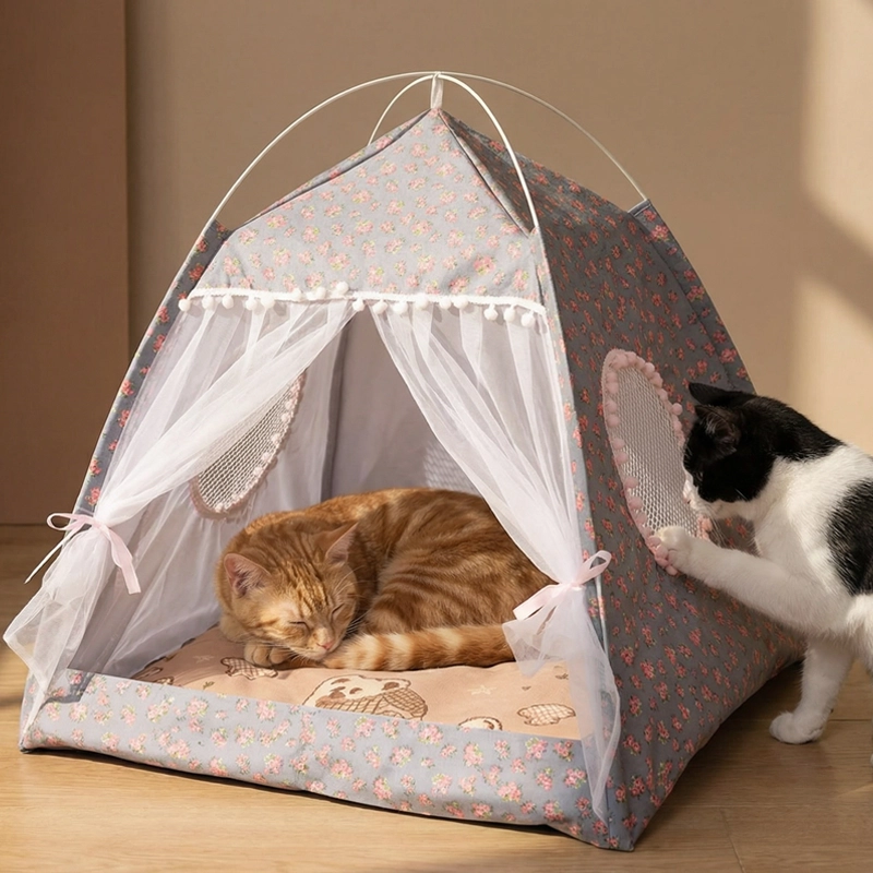 Geben Sie Ihrem Haustier einen kuscheligen Rückzugsort, der sich wie Zuhause anfühlt. Das Primdog Katzenzelt bietet Ihren pelzigen Freunden in jeder Jahreszeit Komfort. Luftige Mesh-Seiten lassen sanfte Brisen leicht hindurchströmen. Weicher Stoff und spielerisches Design hellen jeden Raum sofort auf.
