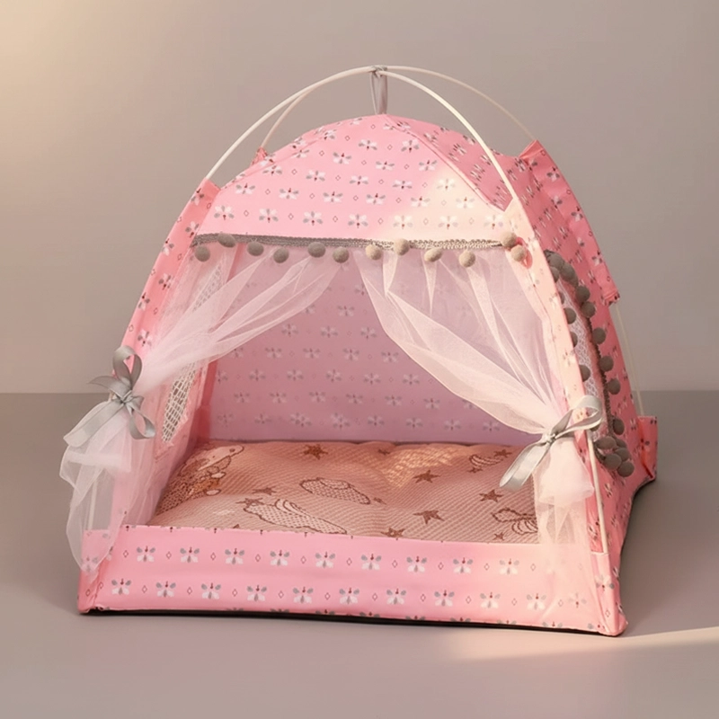 Niedliches Katzenzelt Haus Atmungsaktives Igloo-Bett für Haustiere mit Vorhängen