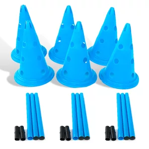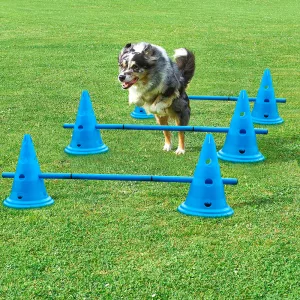 Das Set beinhaltet alles Wichtige: Kegel, Stangen und Hürden. Alles, was du benötigst, um einen abwechslungsreichen Agility-Parcours zu gestalten.