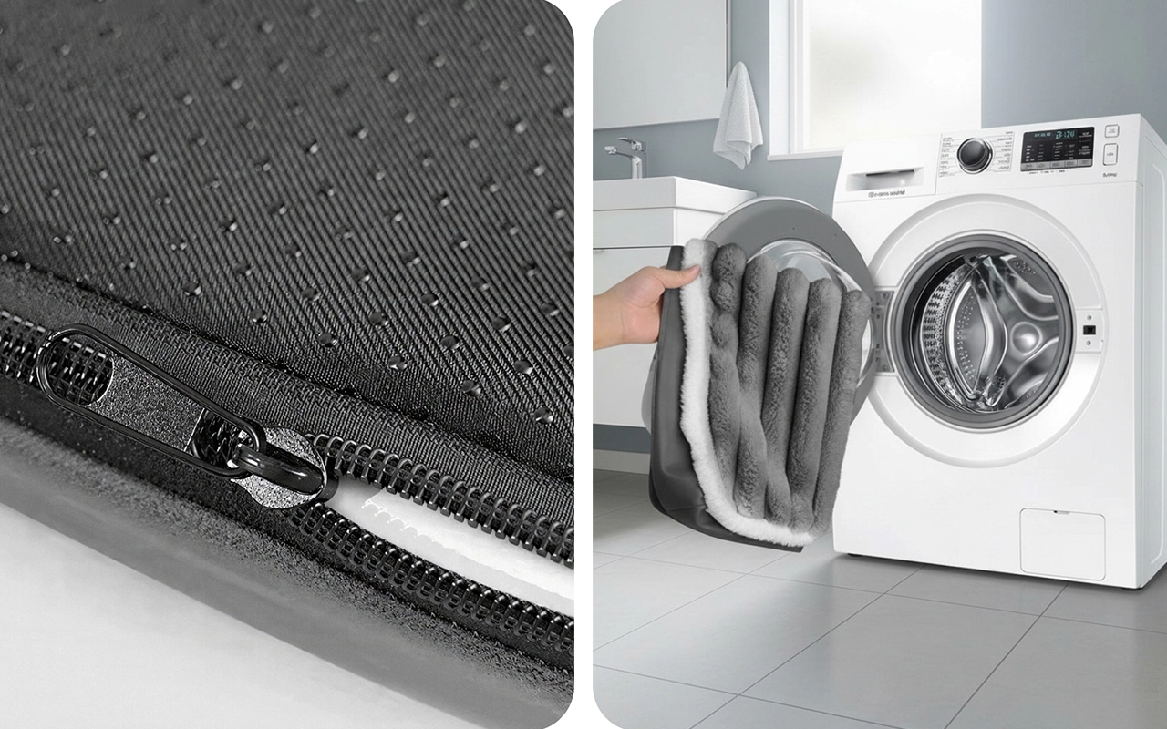 Ein bezogener Reißverschluss lässt sich schnell abnehmen und sorgt für stressfreies Waschen. Genießen Sie ein sauberes Zuhause und frischere Luft mit weniger Aufwand.