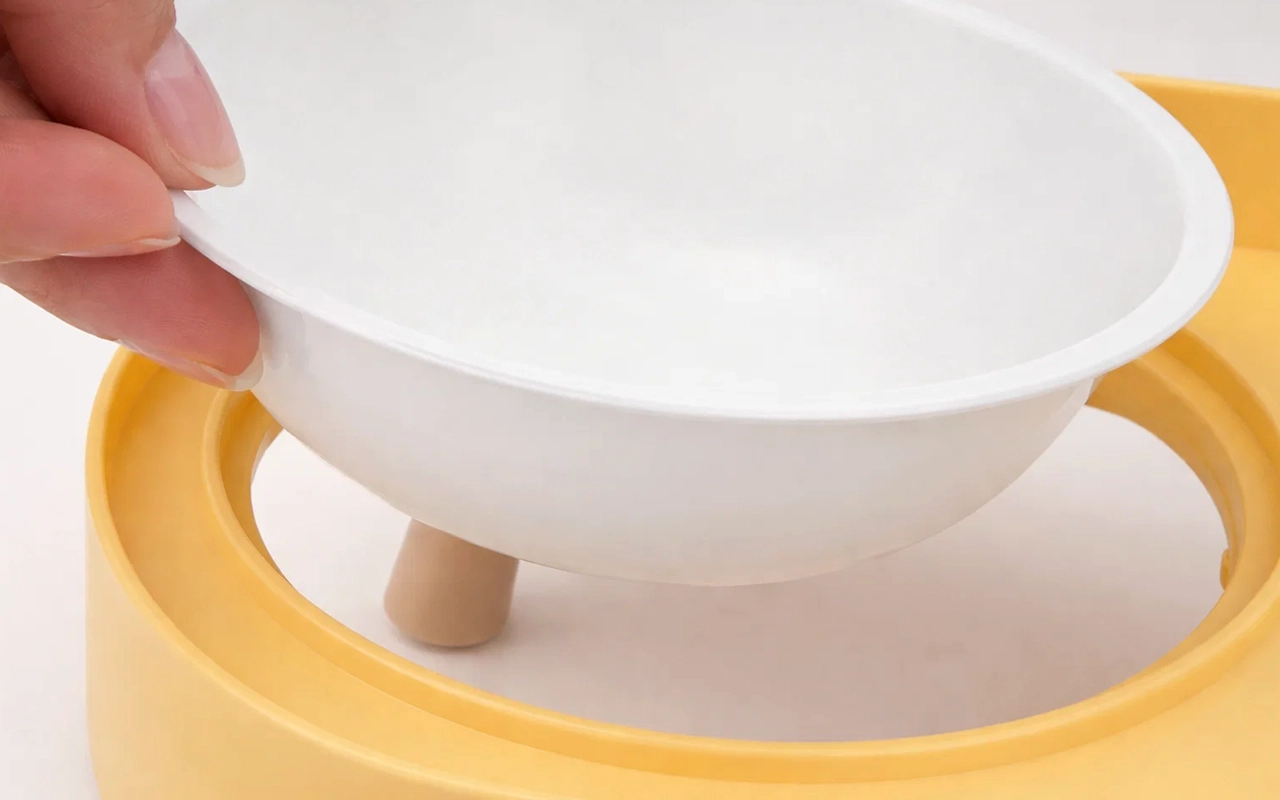 Herausnehmbare Schüsseln lassen sich in einem Schritt zum schnellen Waschen herausnehmen. Kein Schrubben oder Ärger mehr mit festsitzenden Futterresten.