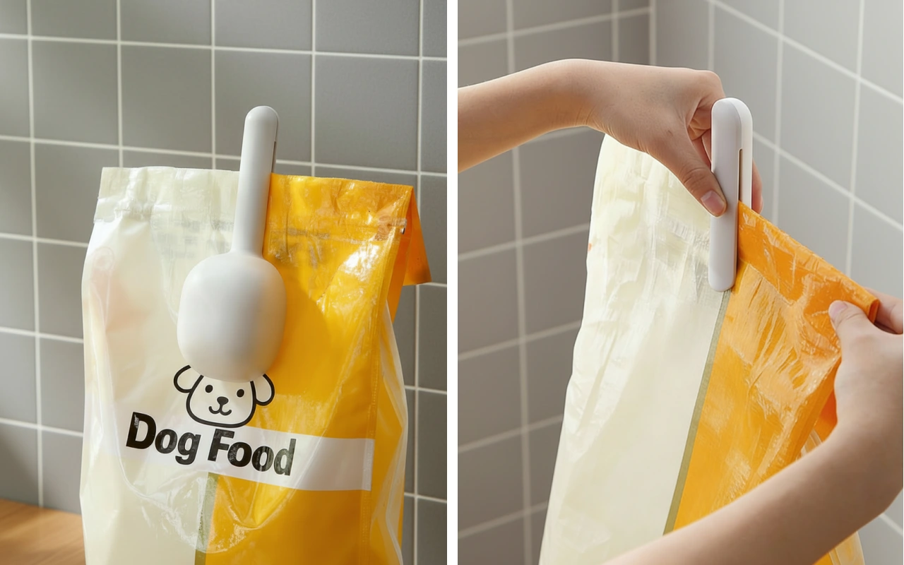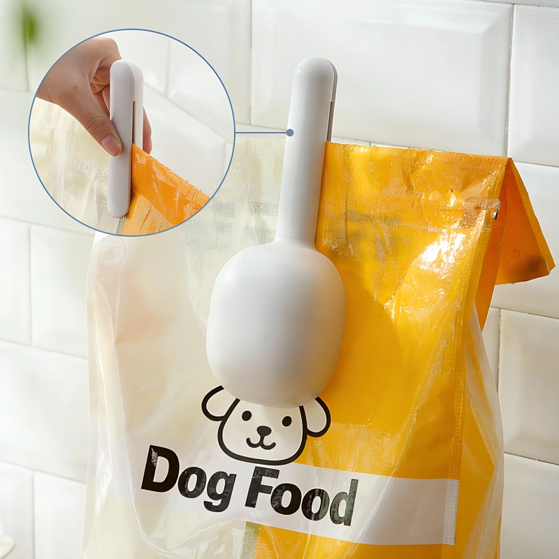 Ich benutze diese Schaufel jeden Tag, weil sie meine Hände sauber hält und nie Hundefutter verschüttet wird. Der Clip hilft wirklich, das Futter länger frisch zu halten.