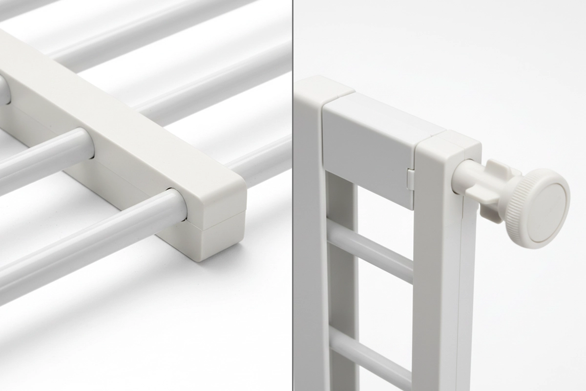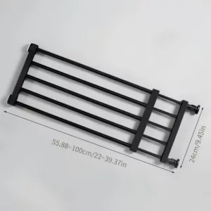Dieses Gitter lässt sich einfach erweitern oder zusammenklappen. Es spart Platz, wenn es nicht gebraucht wird und passt in Türrahmen verschiedener Größen.