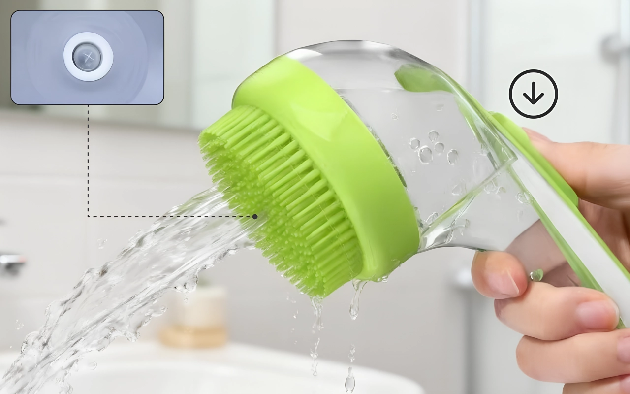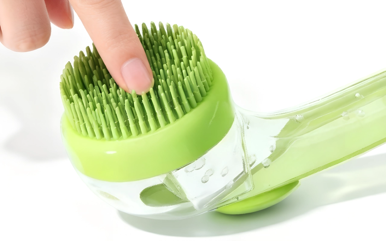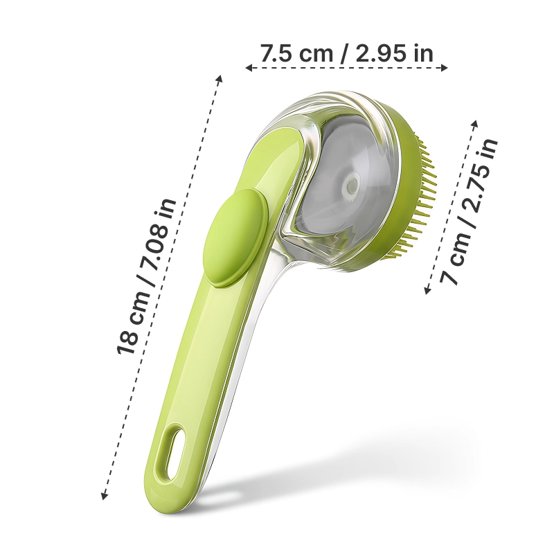 Ich liebe diesen Schrubber wirklich! Er entfernt sanft Schlamm und Fell, und mit dem integrierten Spender wird kein Shampoo mehr verschwendet.