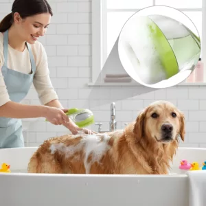 Diese Badebürste ist mein neues Lieblingsprodukt für Hundebäder. Sie gibt genau die richtige Menge Shampoo ab und mein Hund liebt die Massage – absolut kein Durcheinander.