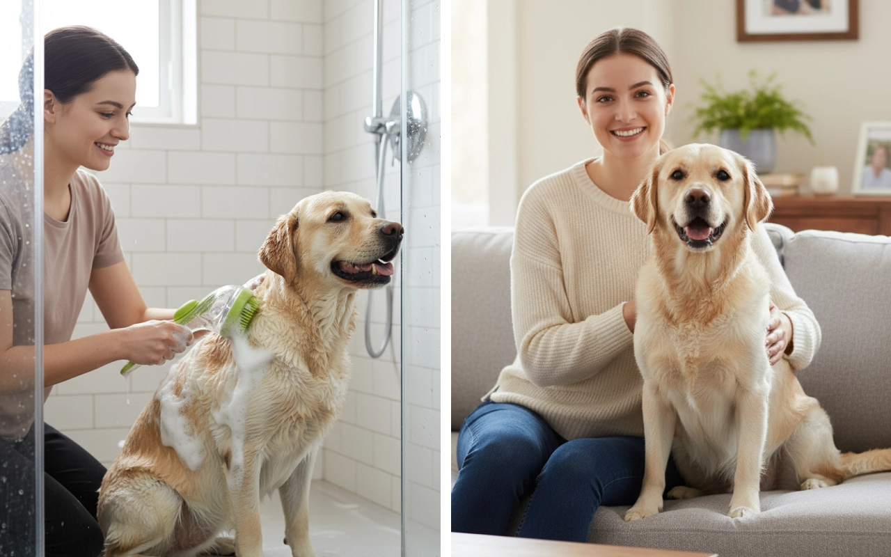 Das Baden geht jetzt viel einfacher und schneller. Meine Hände bleiben trocken, mit dem langen Griff komme ich überall hin und mein Hund sieht besonders sauber aus.