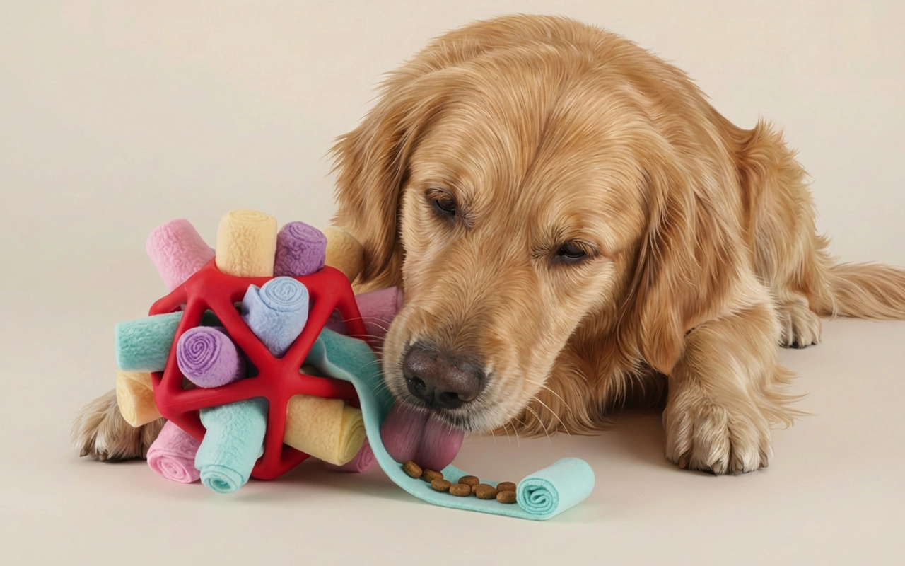 Habe dieses Schnüffelspielzeug für meinen Hund gekauft. Die Farben sind leuchtend und lustig, und er frisst jetzt tatsächlich langsamer. Auch super für Regentage im Haus!