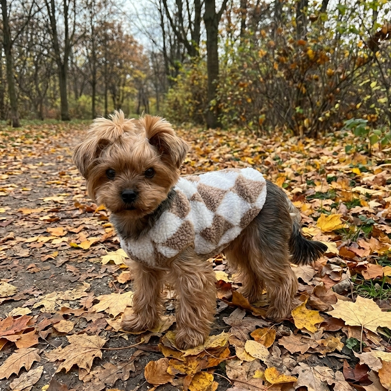 Mein kleiner Hund bleibt mit dieser Jacke richtig warm! Die Druckknöpfe machen es morgens super einfach, und das Karo lässt sie auf Fotos extra niedlich aussehen.
