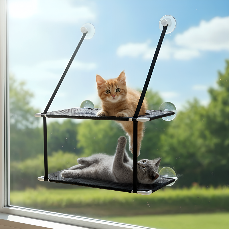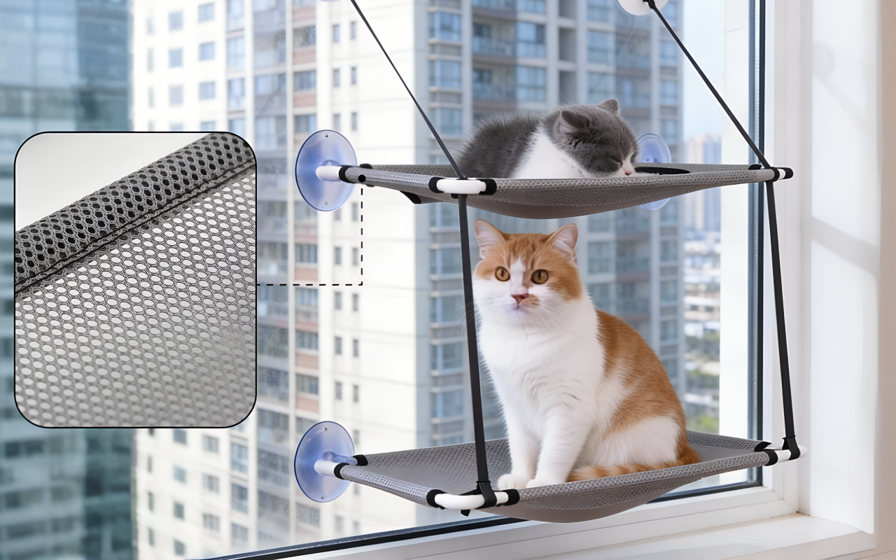 Doppel-Deck-Katzenhängematte fürs Fenster – Hängeliege