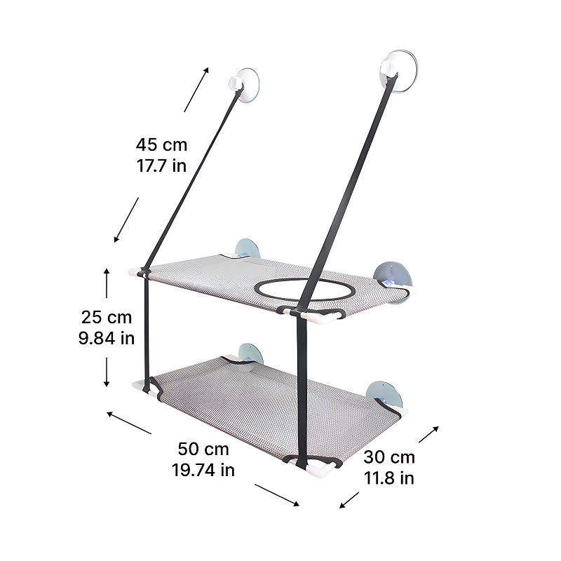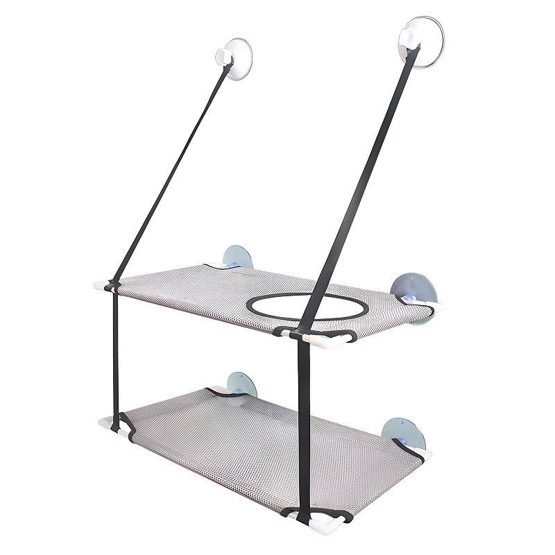 Lassen Sie jede Katze täglich frische Luft und schöne Aussichten genießen. Die Primdog Doppel-Deck-Katzenhängematte hält Haustiere drinnen sicher und glücklich. Starke Saugnäpfe halten sie mühelos an jeder Fensterscheibe fest. Leichte Teile ermöglichen eine schnelle Montage ohne Werkzeug.
