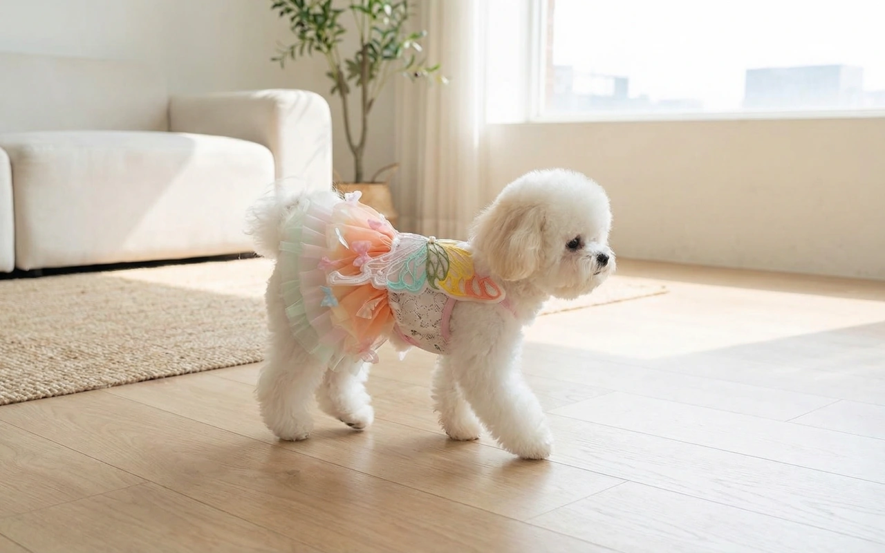 Ich habe das kleine Kostüm für die Geburtstagsfotos meines Hundes benutzt. Kein Kratzen, kein Ziehen, nur ein entspannter Hund, der den ganzen Tag wie eine Feenkönigin posiert.