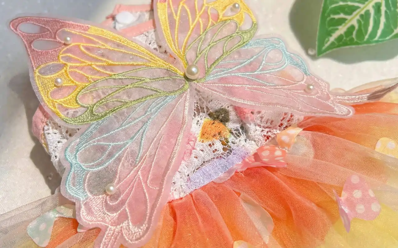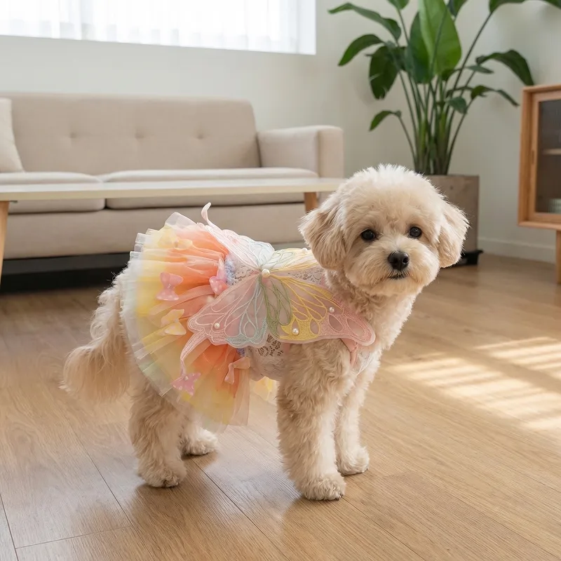 Verwandle dein Haustier im Handumdrehen in eine märchenhafte Erscheinung. Wunderschöne Spitze und Schmetterlingsflügel verleihen einen unwiderstehlich verspielten Look.