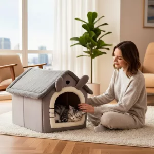 Die rutschfeste Unterseite verhindert das Verrutschen auf glatten Böden oder Teppichen. Haustiere bleiben sicher in ihrem eigenen privaten Rückzugsort.
