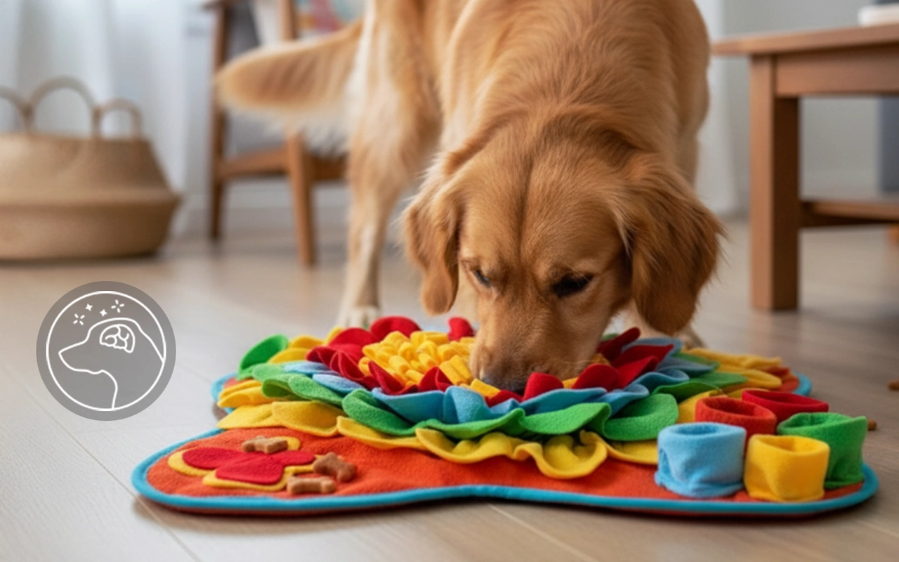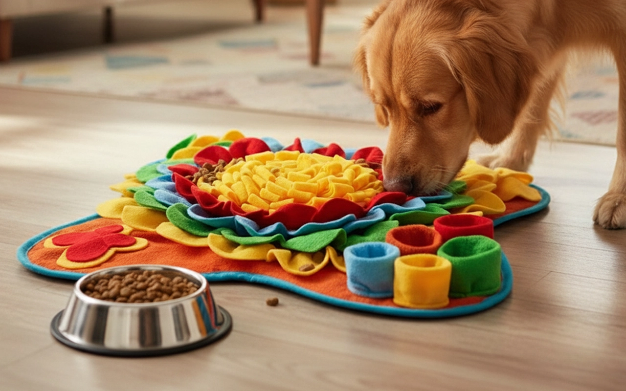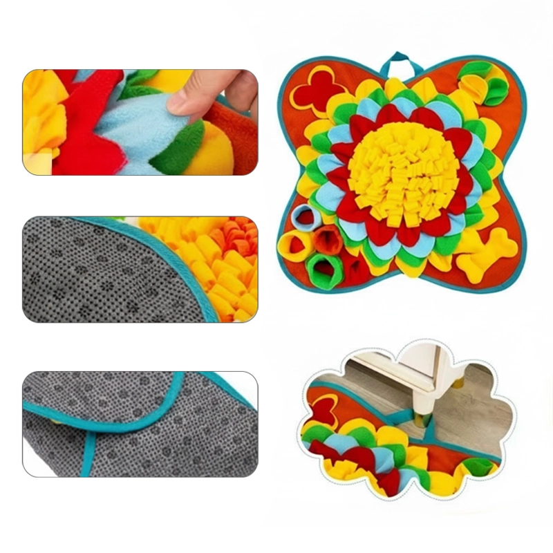 dog puzzle toy, dog snuffle mat, dog sniffing mat, dog puzzle feeder