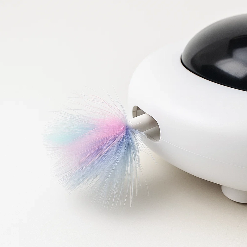 Integrierter Filz sammelt lose Haare, während er herumrollt. Die Böden bleiben sauberer, während Haustiere Energie verbrennen, indem sie Federn jagen.