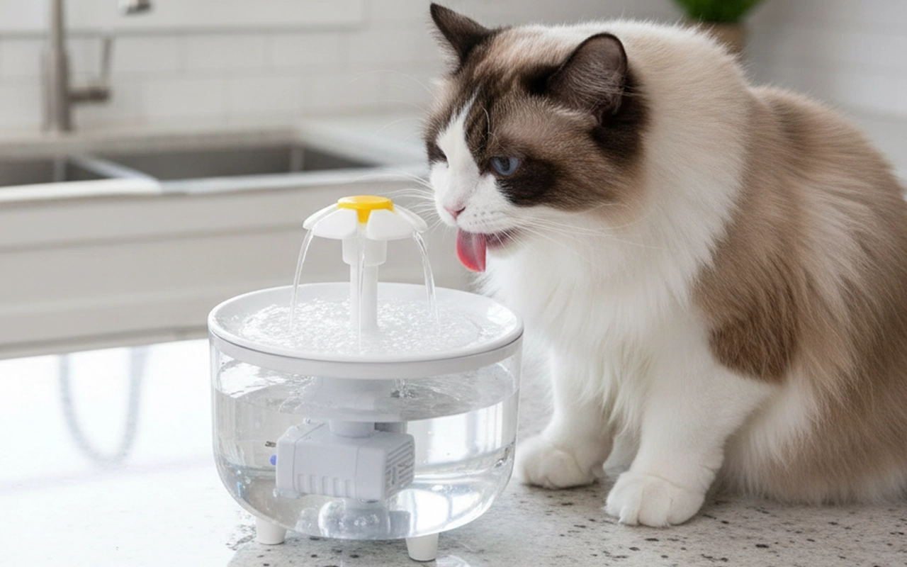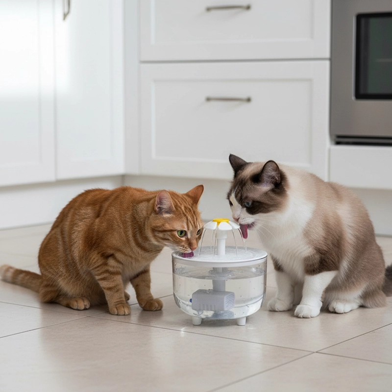 Fließende Wasserströme erregen die Aufmerksamkeit und wecken die Neugier von Haustieren. Mehr Flüssigkeitszufuhr unterstützt aktives Spielen und hilft, Gesundheitsprobleme zu vermeiden.