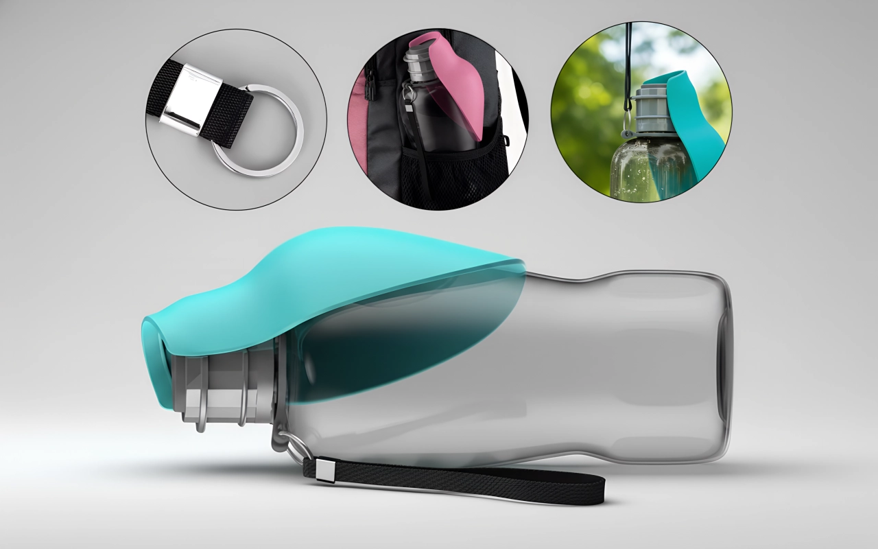 Leichtes Design und stabiler Riemen passen schnell an Taschen oder Gürtel. Hunde und Welpen bleiben überall auf Abenteuern hydratisiert.