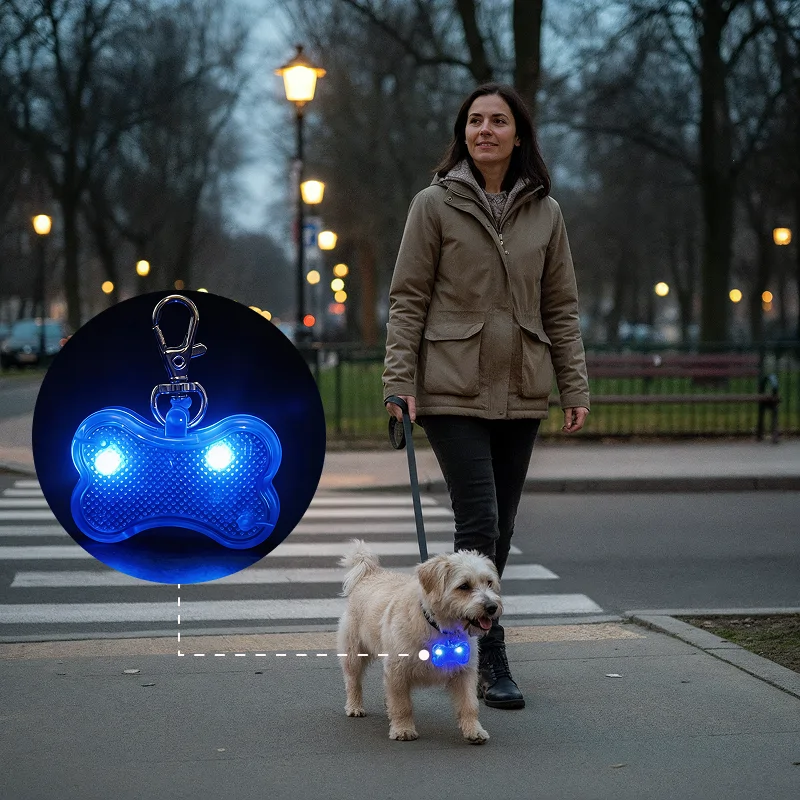Dieser Knochenanhänger ist super für unsere Abendspaziergänge. Mein Hund bleibt sichtbar und die Lichtfarbe lässt sich ganz einfach wechseln. Ich liebe den Clip—er fällt nie ab!