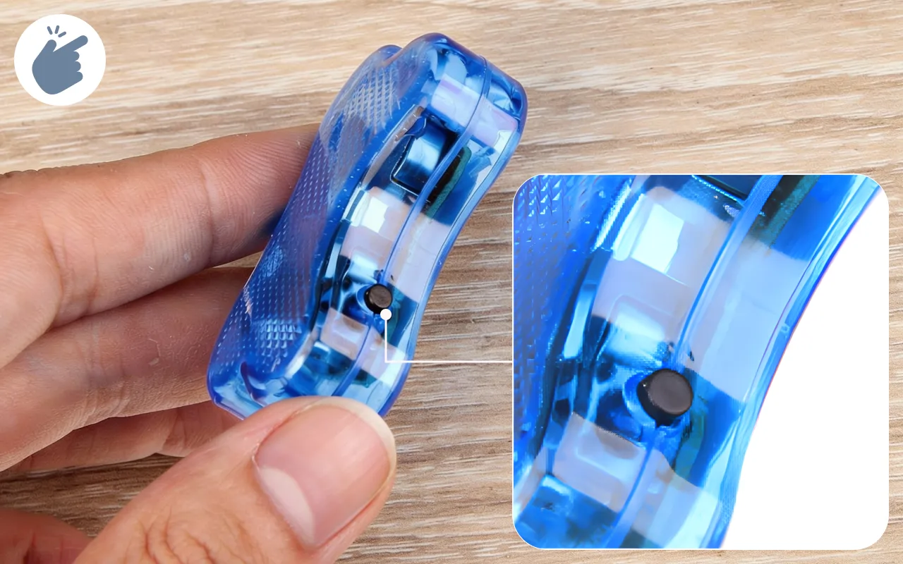 Wechseln Sie die Leuchtmodi mit nur einem Knopfdruck. Der stabile Clip sorgt für eine einfache und sichere Befestigung am Halsband.