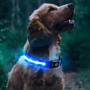 Das Primdog LED-Halsband ist aus der Ferne sichtbar. Es macht deinen Hund bei nächtlichen Spaziergängen gut erkennbar und erhöht seine Sicherheit. Die Beleuchtung kann leicht an die Umgebung angepasst werden.