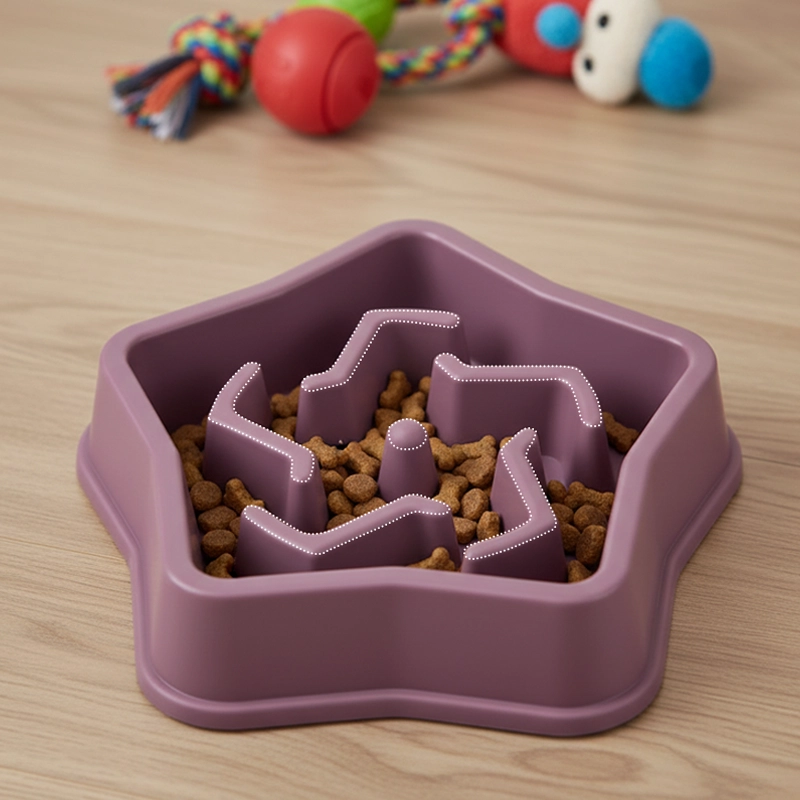 Das Labyrinth-Design hat wirklich das Fressen meines Schäfers verlangsamt. Er verschluckt sich jetzt nicht mehr, und ich muss weniger Zeit damit verbringen, Futterreste vom Boden zu wischen. Glücklicher Hund!