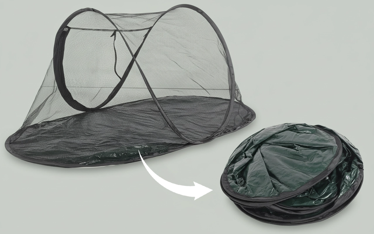 Ich mag, wie einfach das Zelt zu falten und in den Park zu tragen ist. Meine Katze genießt die Zeit auf dem Gras, ohne weglaufen zu können.