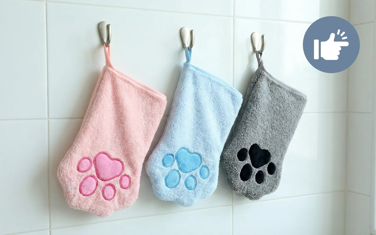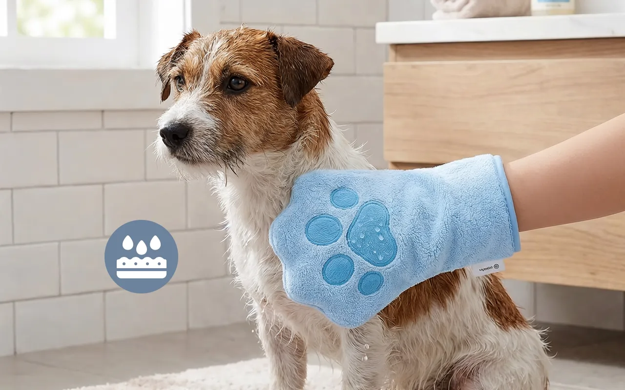 Keine großen, nassen Handtücher mehr überall! Ich benutze den Handschuh, hänge ihn an den Haken, und er ist bereit fürs nächste Mal. Trocknet Haustiere schnell und ist angenehm zu tragen.