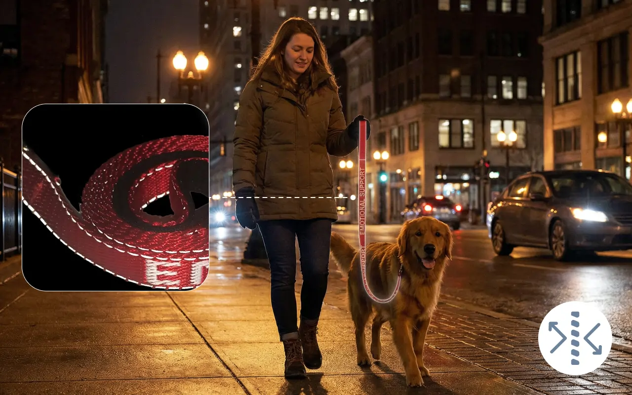 Reflektierende Nähte sorgen dafür, dass Ihr Haustier nachts sichtbar bleibt. Ein sicherer Metallverschluss hält Ihren Hund überall geschützt.