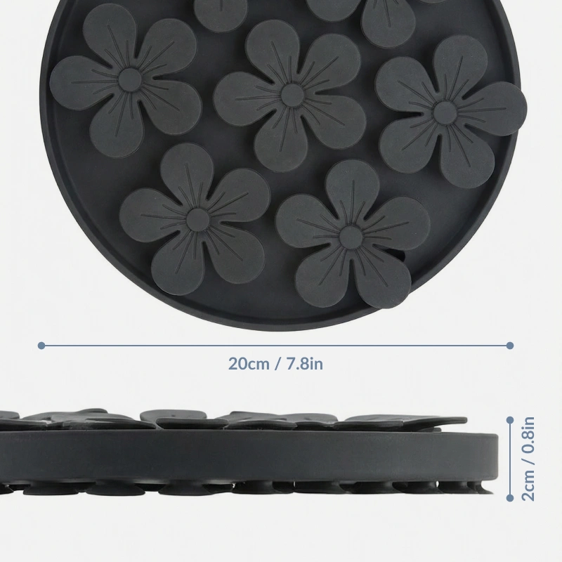 Unser Welpe hat früher bei jeder Mahlzeit seinen Napf umgekippt, aber diese Matte haftet wie Kleber! Er verbringt mehr Zeit mit Kauen, was weniger Schlingen und einen ruhigeren Magen bedeutet. Ich liebe es, wie bunt und fröhlich sie aussieht.
