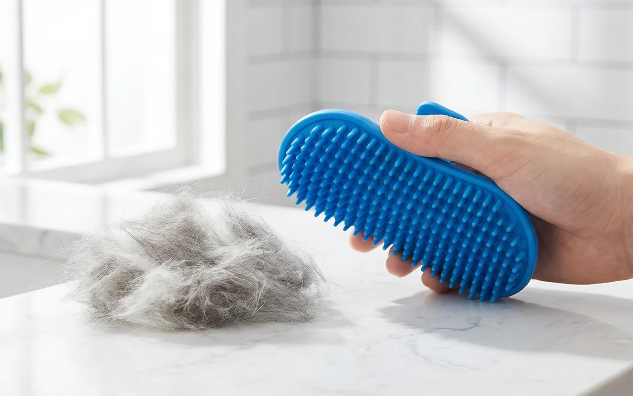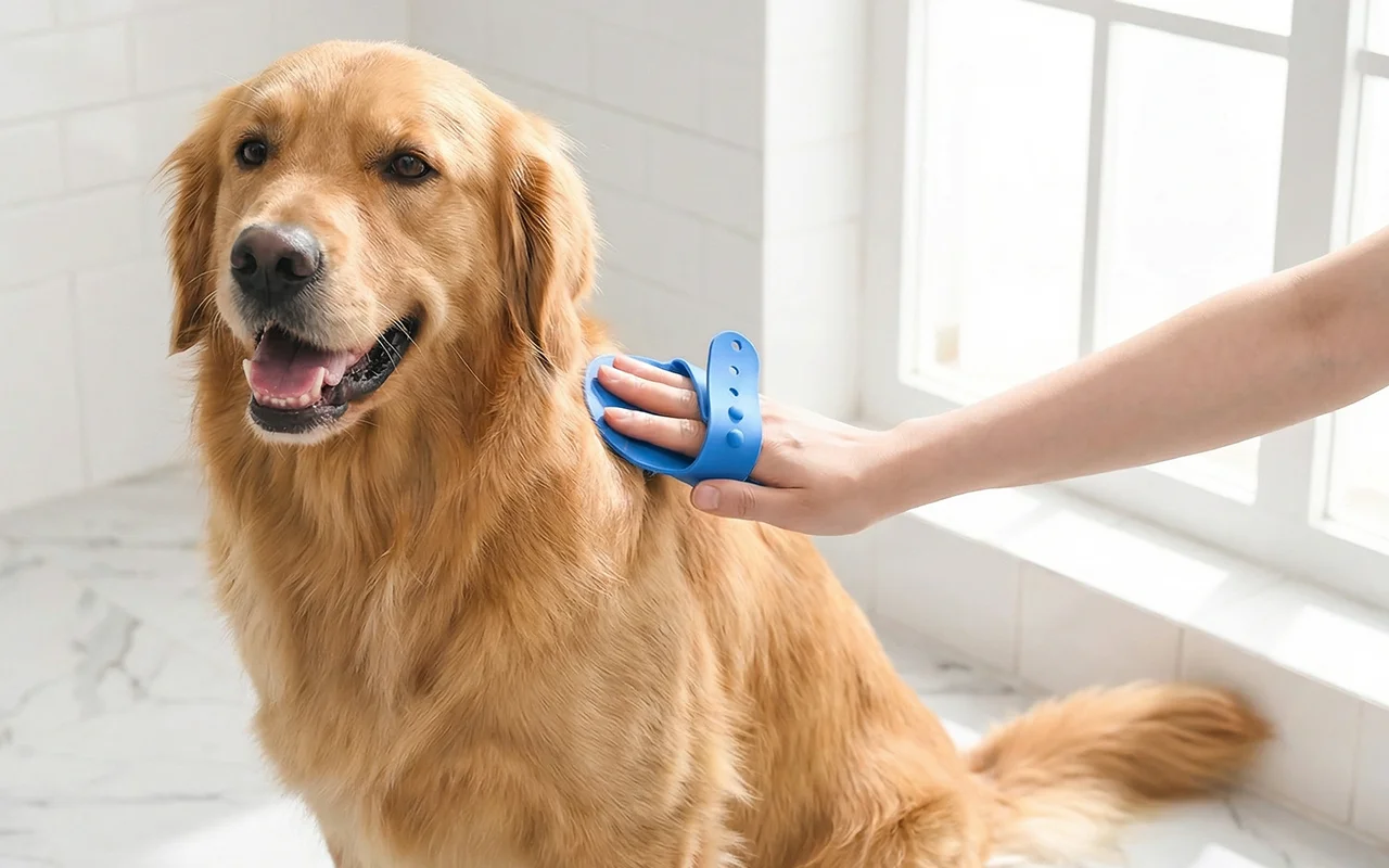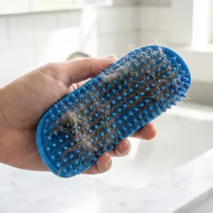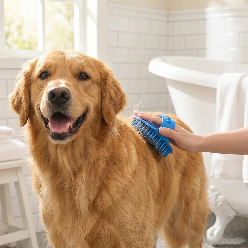 Mein Hund hat sich früher beim Baden versteckt, aber jetzt kommt er angerannt! Der Schrubber ist bequem und hilft sogar, jede Menge loses Fell zu entfernen.