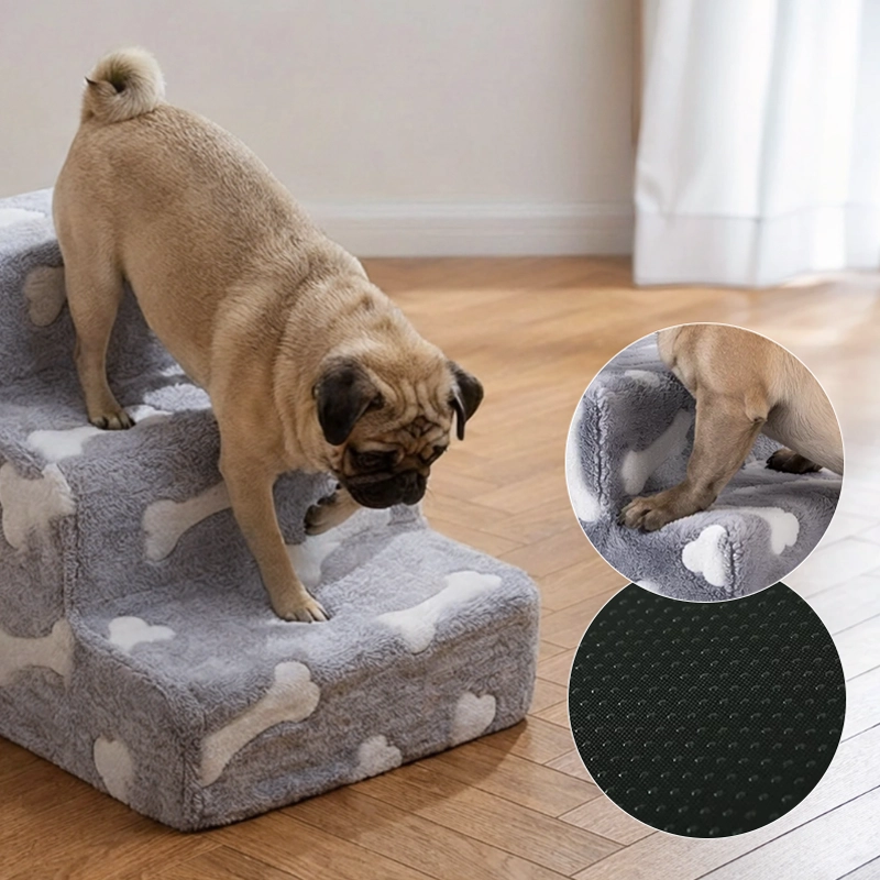 Ältere Tiere oder Haustiere mit schmerzenden Gelenken kämpfen täglich. Primdog Soft Steps helfen ihnen, sicher aufs Sofa oder Bett zu kommen. Für Komfort konzipiert, schützt diese sanfte Lösung die Beweglichkeit. Entscheiden Sie sich für ein einfacheres, sichereres Leben für Ihren lieben Begleiter.
