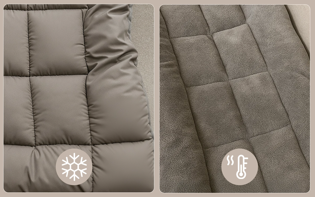 Eine Seite hält in den wärmeren Monaten kühl. Drehen Sie sie im Winter um, um eine kuschelige Oberfläche zu erhalten.