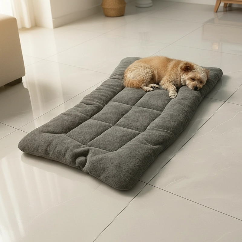 Mein Hund liebt diese dicke Matte für seine Nickerchen. Sie ist im Winter warm, aber lässt sich im Sommer einfach wenden – hält ihn kühl und glücklich. Sehr zu empfehlen!